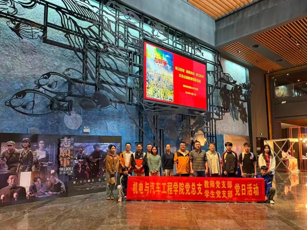 为深化党员思想政治教育,厚植爱国主义情怀,传承红色基因,10 月 24 日下午,机电与汽车工程学院党总支组织教师党员、学生党员及部分入党积极分子,开展 “铭记历史,砥砺前行” 主题党日观影活动,集体观看抗美援朝题材影片《志愿军:浴血和平》,在光影中回望烽火岁月,于感动中汲取奋进力量。