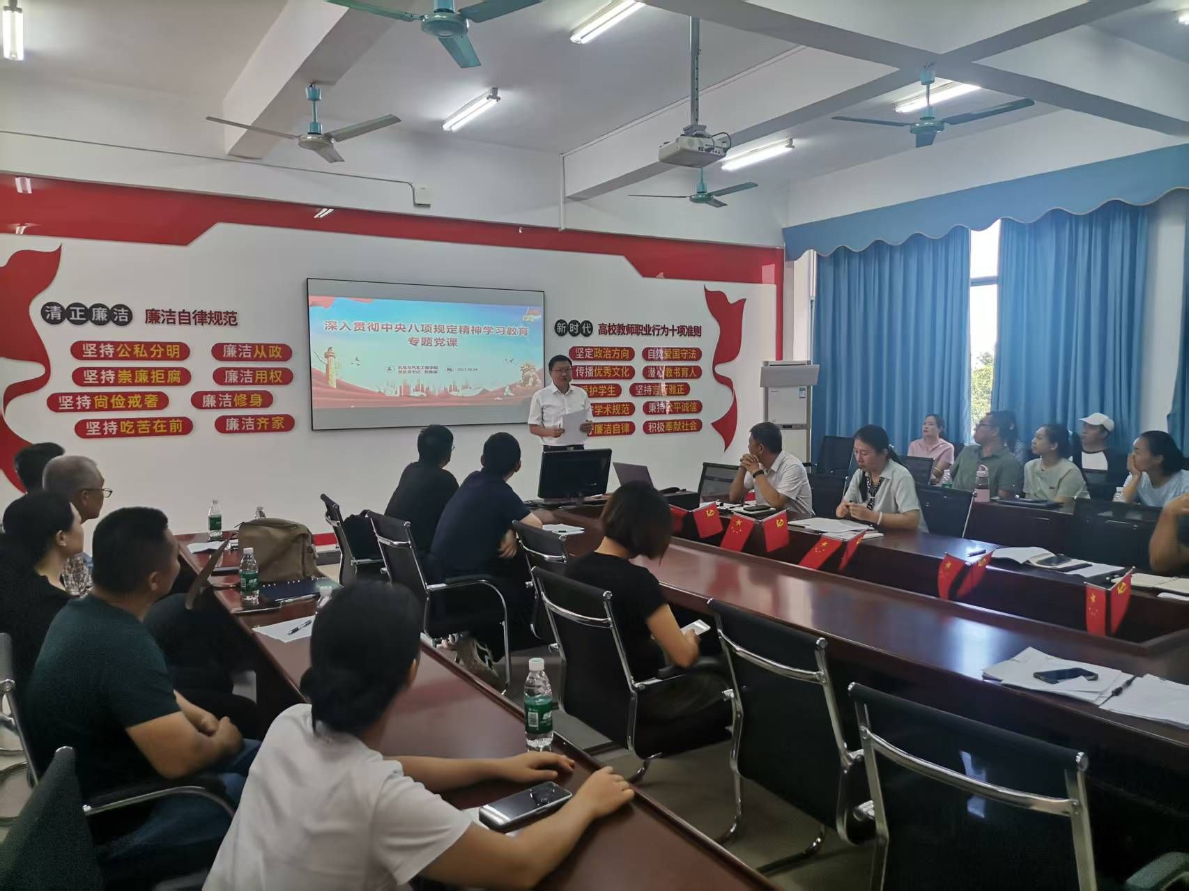 2025年6月24日,机电与汽车工程学院党总支开展深入贯彻中央八项规定精神学习教育的专题党课,党课由学院党总支书记彭陈俊主持
