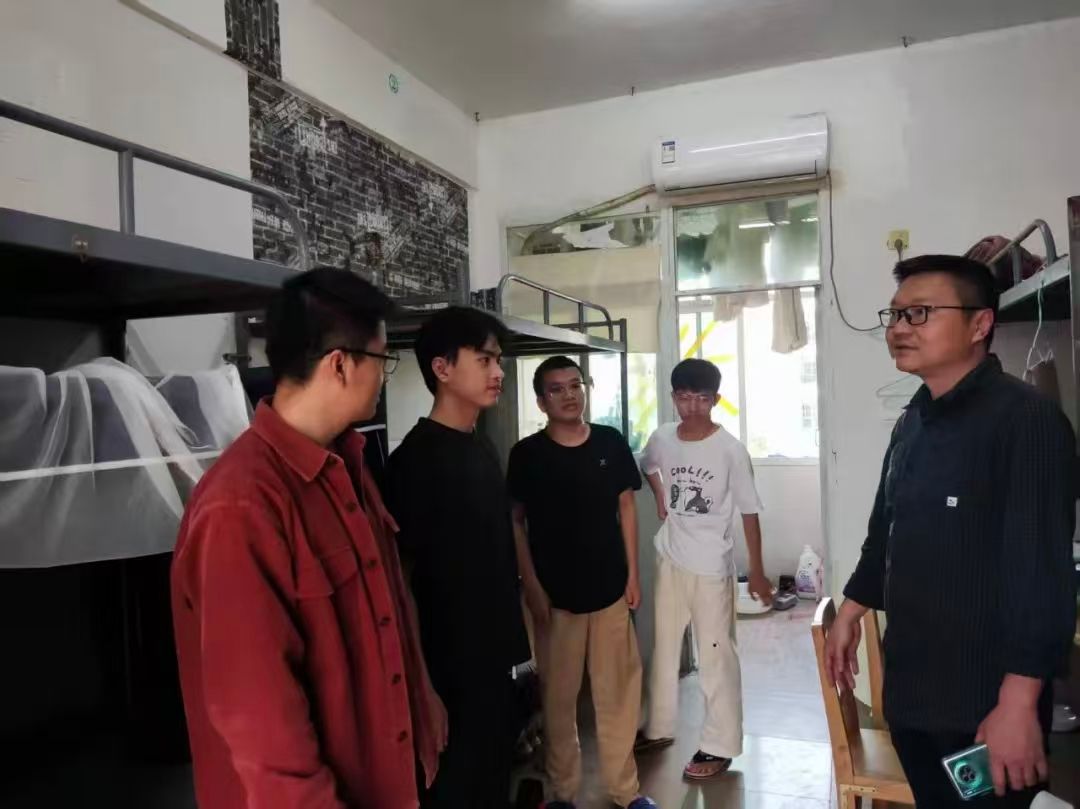 宿舍检查聚焦内务卫生、用电安全、消防隐患,重点排查违规电器与私拉乱接等问题。领导与学生亲切交流,关心返校适应情况与新学期规划,叮嘱严守安全规定、养成文明